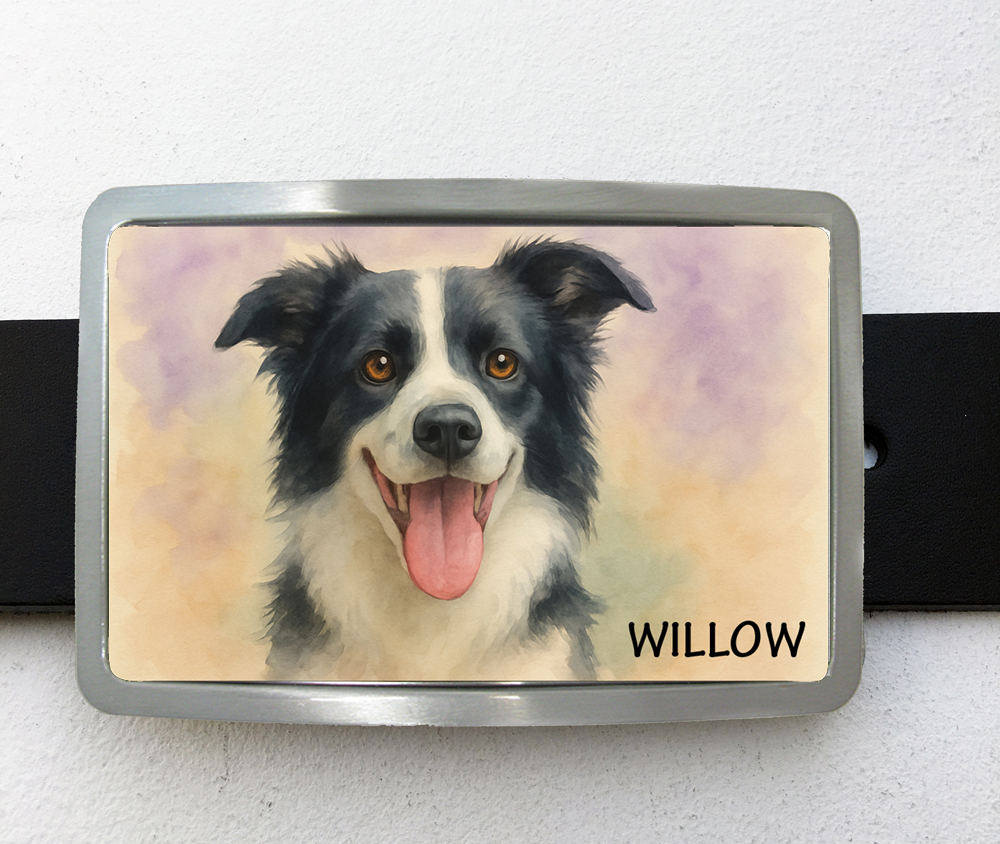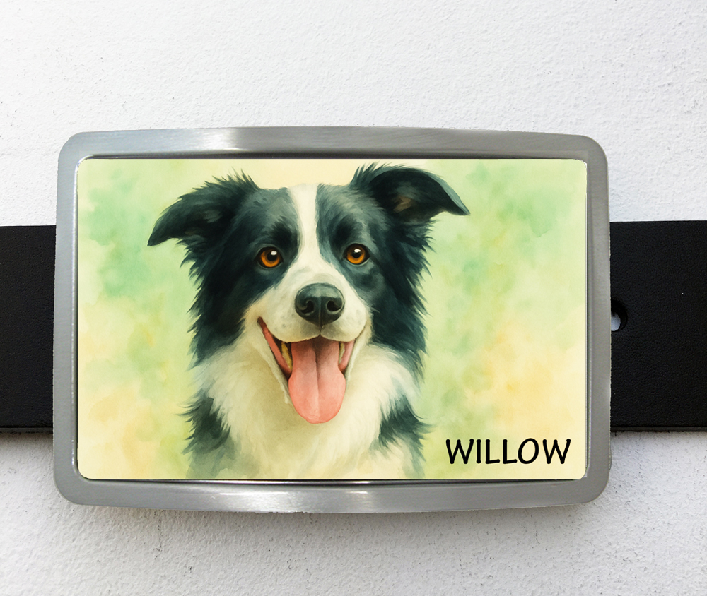 08B - Boucle de ceinture personnalisable Photo chien style Aquarelle