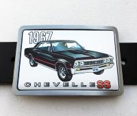 Boucle de ceinture de forme rectangle représentant une Chevrolet Chevelle