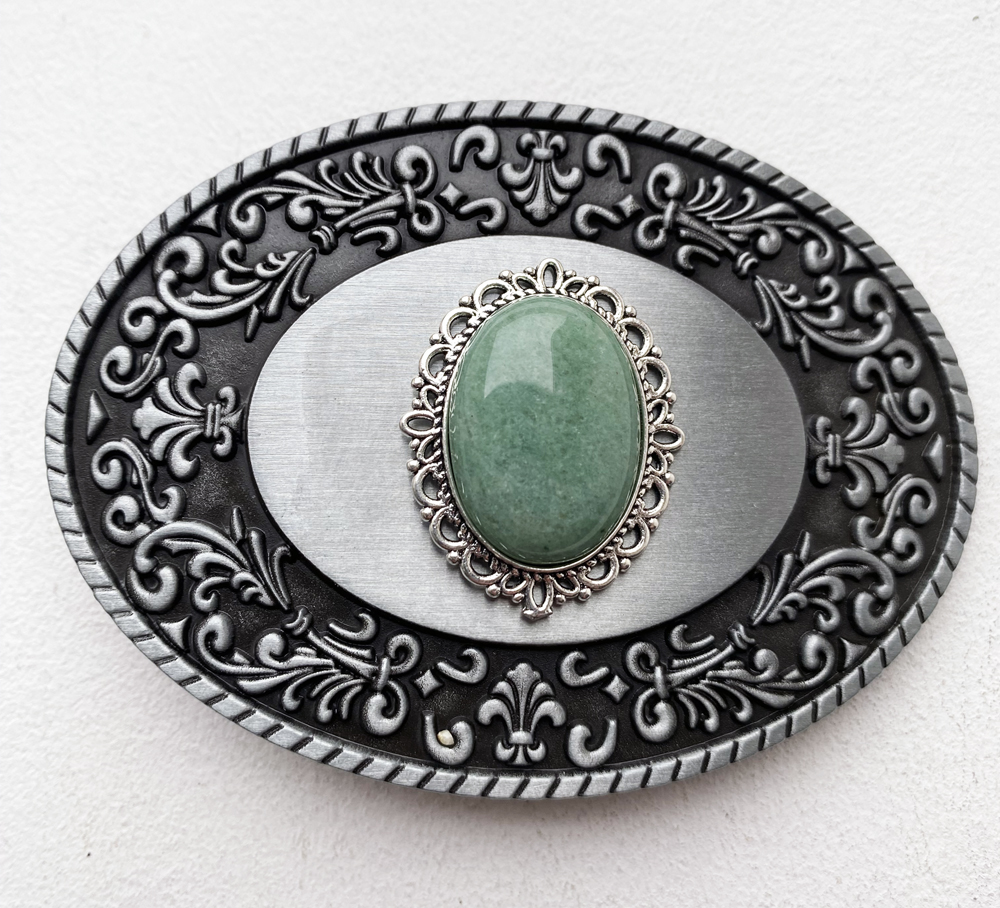 1. Boucle de ceinture Pierre ovale Aventurine verte